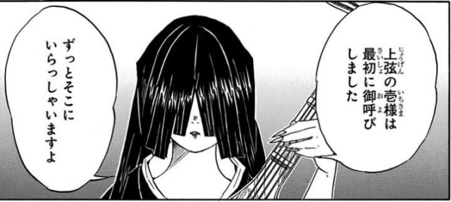 上弦の鬼たちからも存在を認知されており、「琵琶女」や「琵琶の君」などと呼ばれるシーンも。