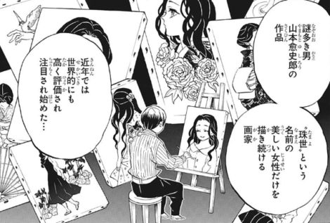 謎多き画家・山本愈史郎として登場していて、珠世の姿だけを描き続けていました。