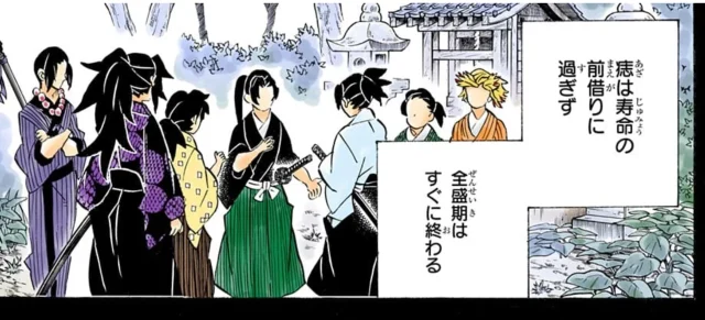 黒死牟の回想では、痣の寿命について隊士たちの間で話しているように見えるシーンがあります。