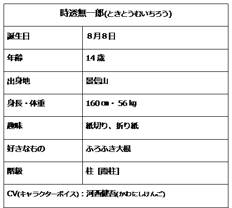 それでは、時透無一郎の基本のプロフィールから、見ていきましょう!どうぞ!!